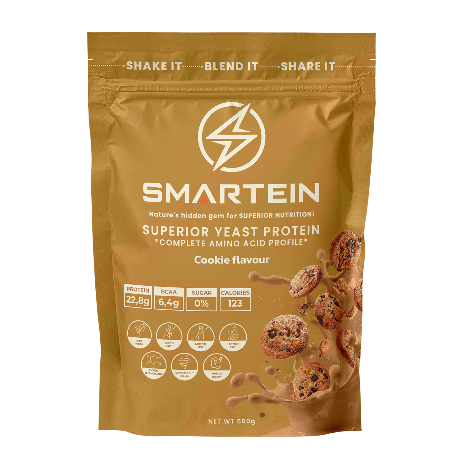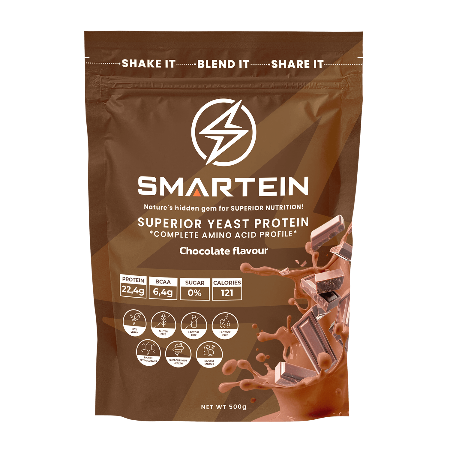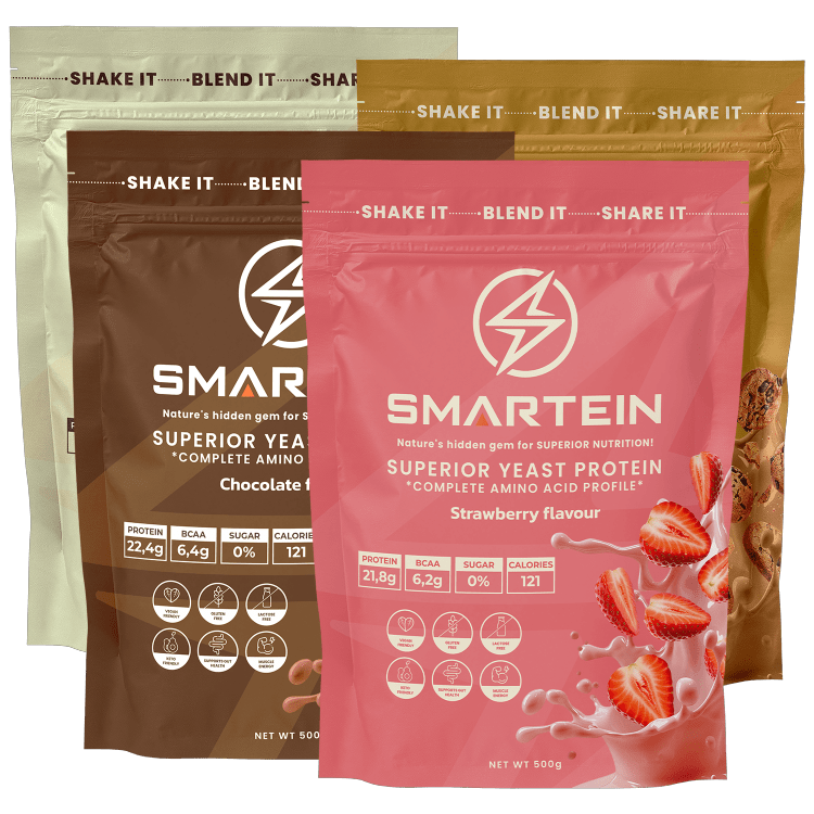 Praškasta smeša za pripremu proteinskog napitka za izgradnju i obnovu mišića. SMARTEIN® je protein najnovije generacije nastao ekstrakcijom kvasca Saccharomyces cerevisiae. Nastaje postupkom kvasne fermentacije melase, šećerne trske i cvekle. Mikrobnog porekla, protein iz kvasca se dobija potpuno prirodnim postupkom koji je pouzdan, ekološki prihvatljiv i dugoročno održiv. SMARTEIN® sadrži visoki procenat proteina, uključujući sve esencijalne i neesencijalne aminokiseline koje učestvuju u izgradnji tkiva organizma. Visok sadržaj BCAA (aminokiselina razgranatog lanca – leucin, izoleucin i valin) učestvuje u sintezi mišićnih vlakana.